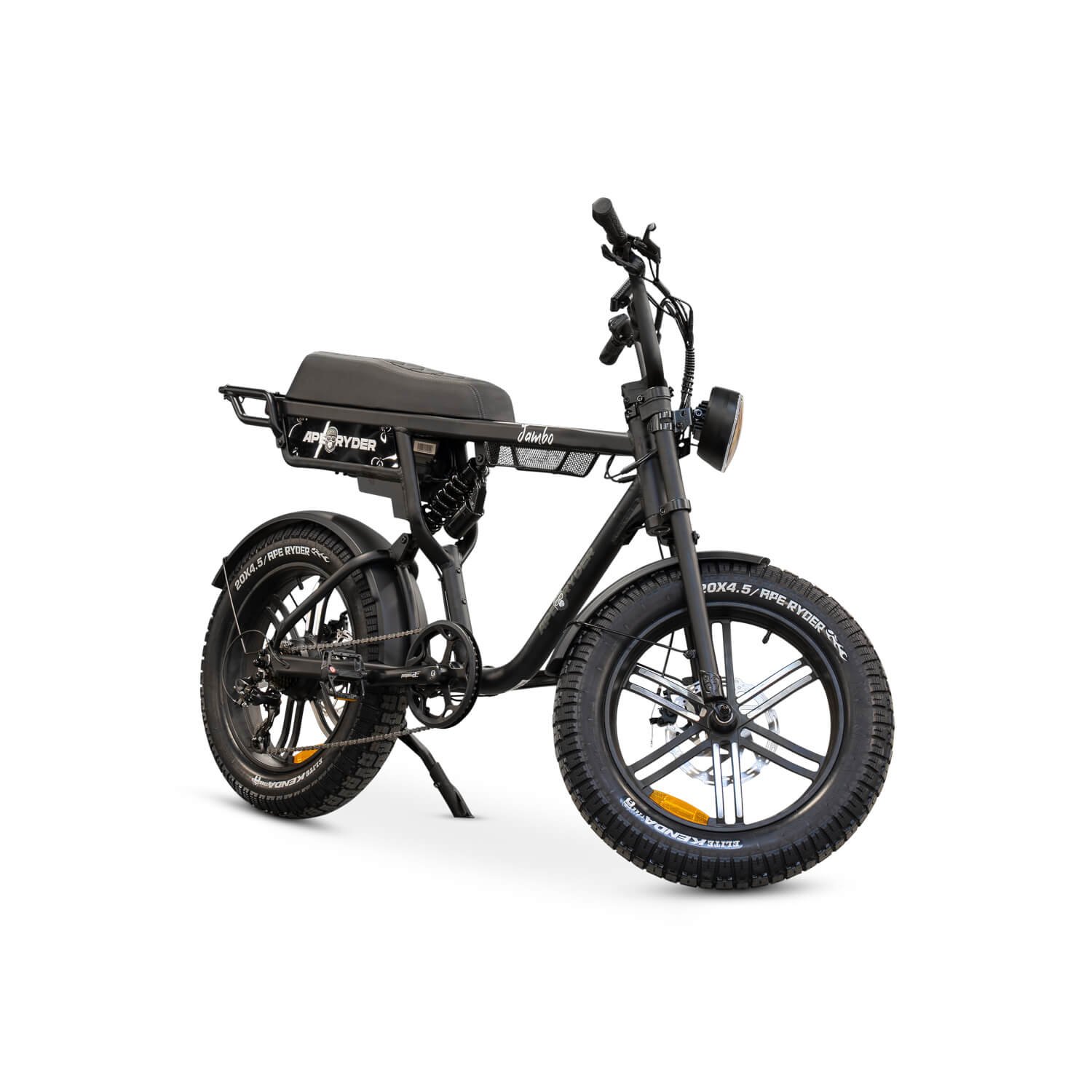 Ape Ryder Jambo Matte Black, 250Watt motorvermogen, topsnelheid 25 km/u, 20X4.5 inch banden, 7 versnellingen, bereik 40 km