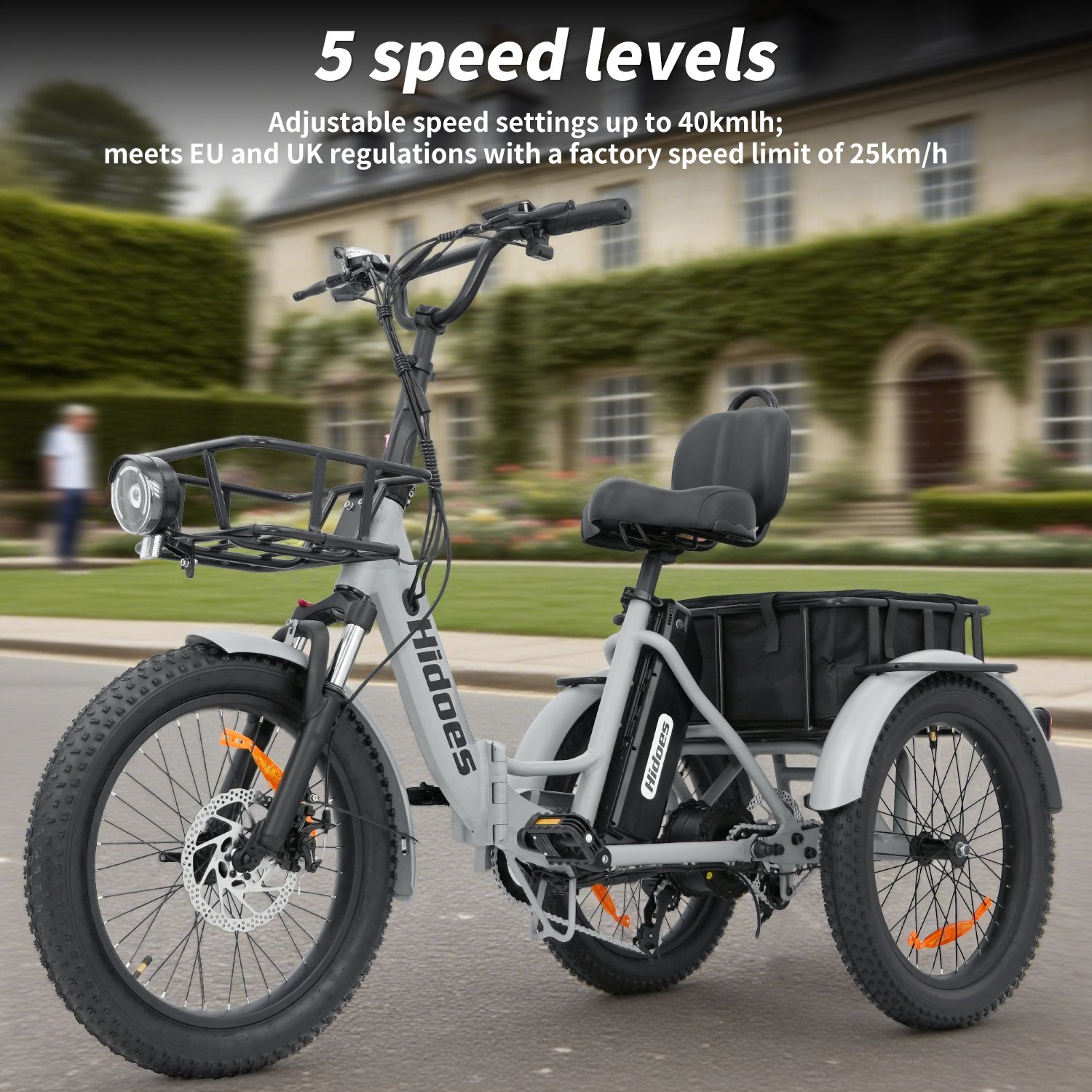 Hidoes ET2 Opvouwbare elektrische driewieler fiets, topsnelheid 25 km/u, 20X3.0 inch banden, 7 Versnellingen