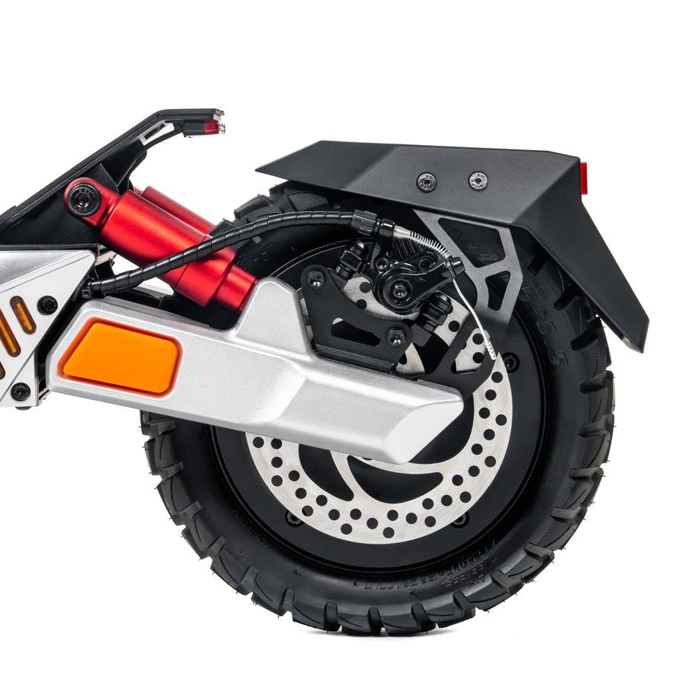 Daarnaast beschikt de step over een geavanceerd remsysteem met schijfremmen voor en achter, aangevuld met elektronisch remmen. Dit betekent dat je met vertrouwen kunt remmen, zelfs in noodsituaties, met een remweg van slechts 6-8 meter.