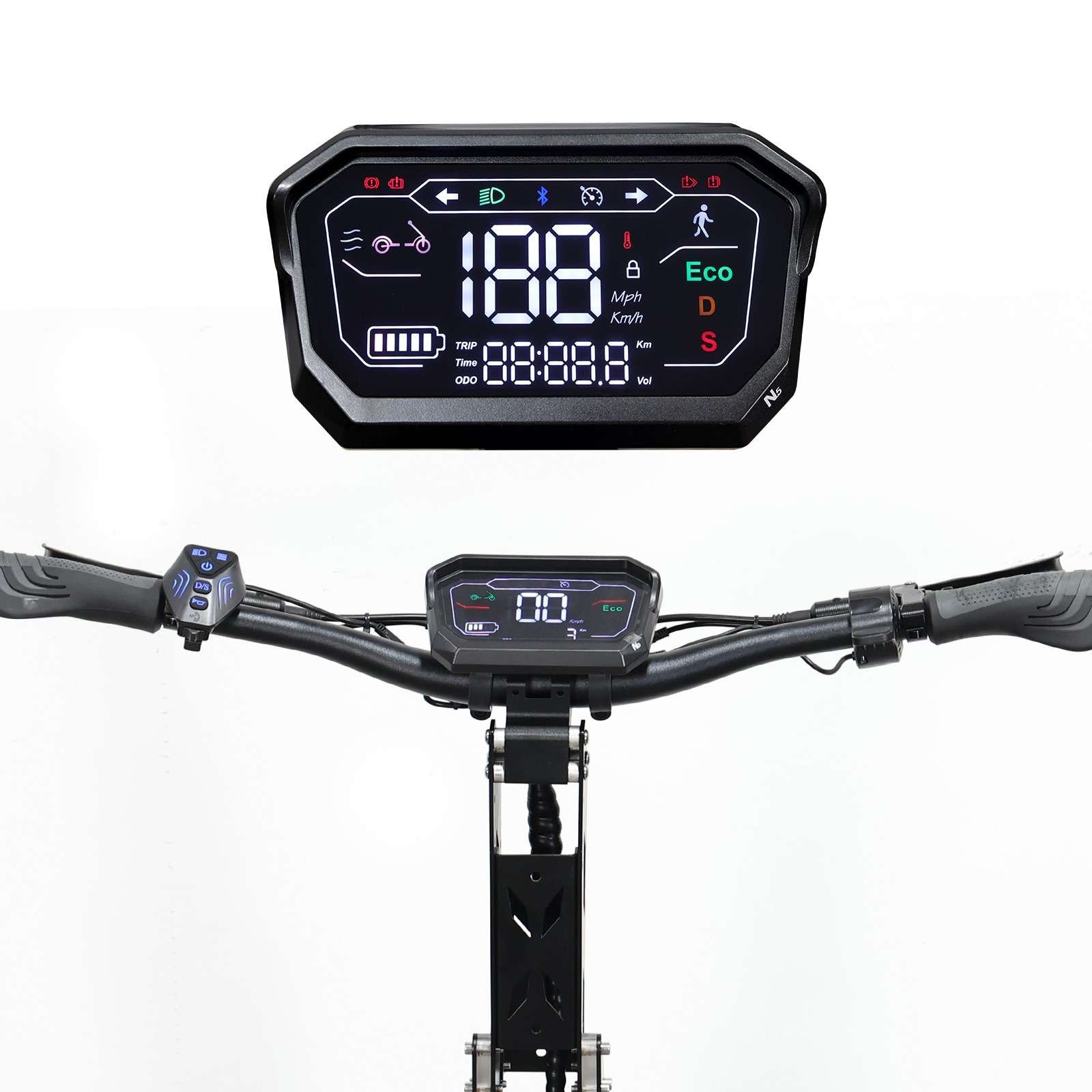 Je veiligheid is onze prioriteit! De MT30 is uitgerust met hydraulische schokdempers aan de voorkant en een veer schokdemper aan de achterkant, voor een soepele rit, ongeacht het terrein. Bovendien zorgt de dubbele koplamp van aluminiumlegering ervoor dat je altijd goed zichtbaar bent, zelfs in het donker. En met het geïntegreerde NFC antidiefstal formulier ben je verzekerd van een extra laagje veiligheid.