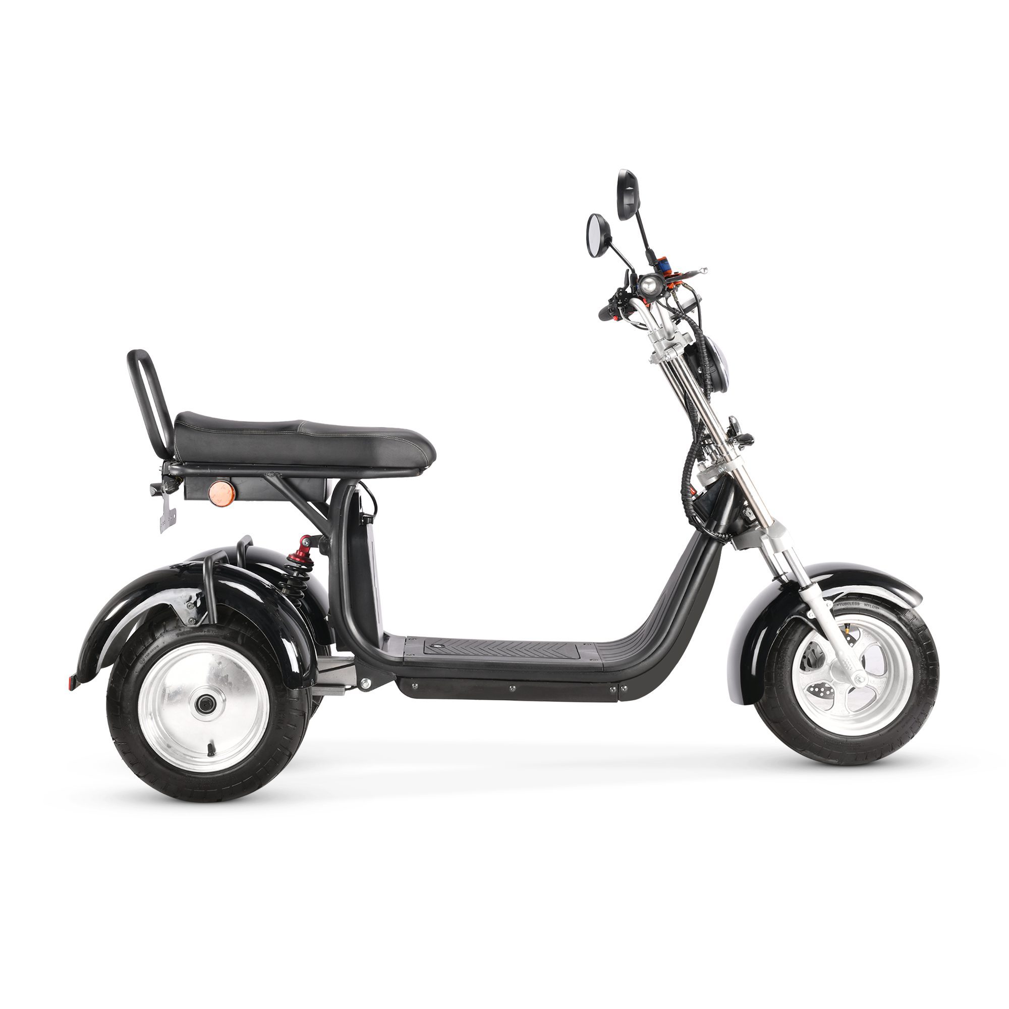 X17 pro driewieler, E-chopper, 4000 Watt motorvermogen, 10 inch banden, topsnelheid 45 km/u, dubbele 60V 35 en 20AH lithium verwijderbaar accu`s, bereik 100 – 120 km