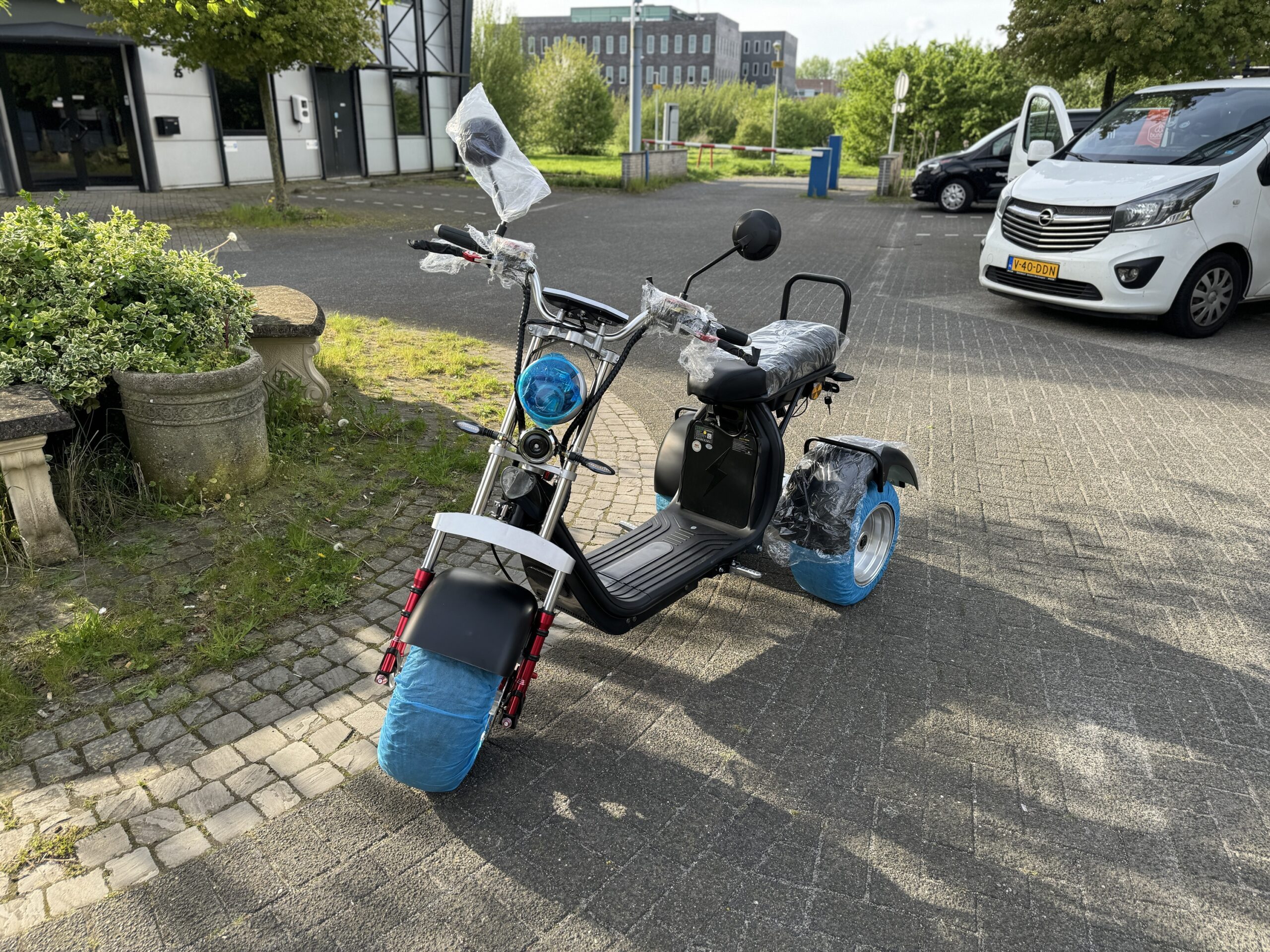Bij levering ontvangt u het certificaat en de verzekeringsinformatie van uw elektrische scooter. Na ontvangst bent u zelf verantwoordelijk voor de aanvraag van de kentekenplaat bij de DIV en het afsluiten van de verplichte verzekering bij uw eigen verzekeringsagent.