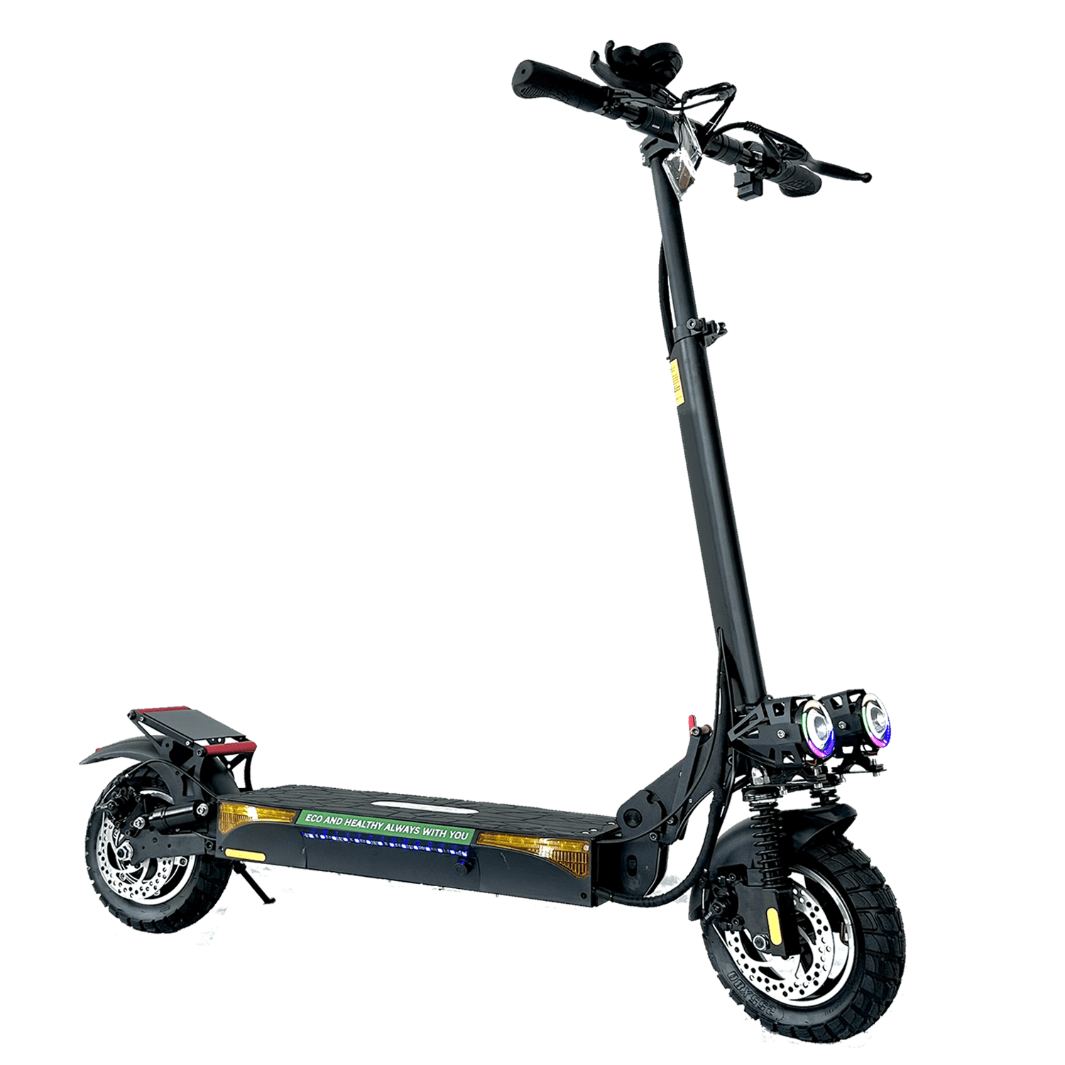 De X5 Max Elektrische step is niet alleen krachtig en veilig, maar ook zeer robuust. Het frame is gemaakt van aluminium en ABS + PC + Al legering, waardoor het bestand is tegen dagelijks gebruik en verschillende weersomstandigheden. Met een draagvermogen van 150 kg en luchtbanden van 10 inch met binnenbanden ben je verzekerd van een stabiele rit, zelfs op oneffen terrein.